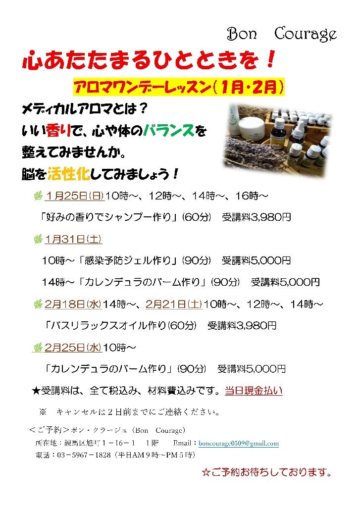 2月21日(土)10:00~12:00~14:00~バスリラックスオイル作り